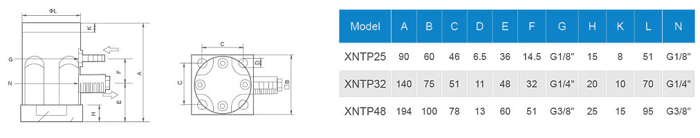 | XNTP25 | 5.840 | 6.950 | 8.780 | 265 | 435 | 825 | 33-108 |
