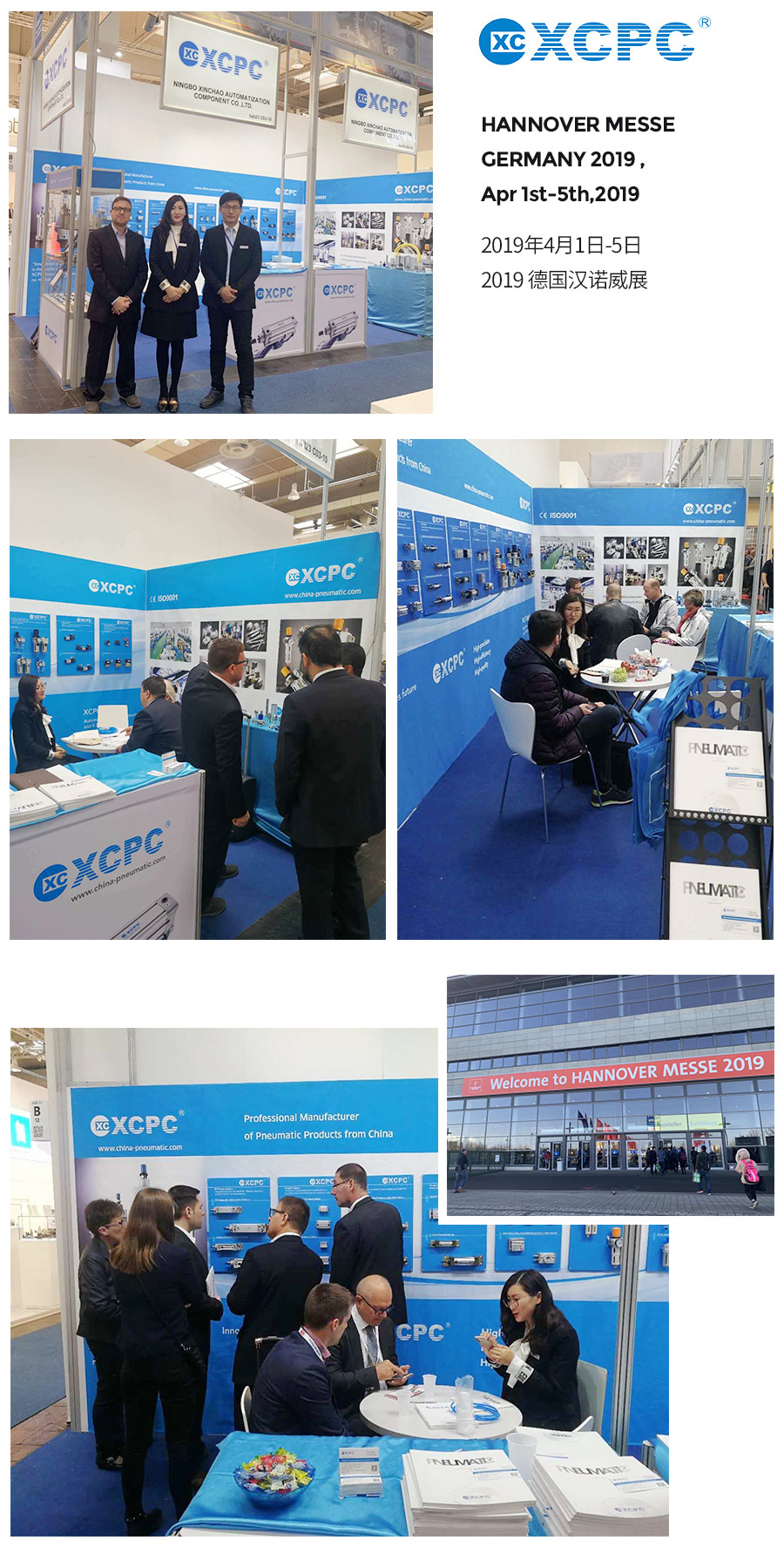From April 1 to 5, 2019, China XCPC Pneumatic appeared at the Hannover Messe Industrial Exhibition in Germany. During the exhibition, our staff had in-depth negotiations and exchanges with new and existing customers from Germany, other European countries, the Americas, the Middle East and other markets. Many customers highly praised and fully recognized the product quality and professional services of XCPC. This exhibition not only consolidated partnership friendship, expanded international market opportunities and achieved fruitful results, but also effectively enhanced the international influence of the XCPC brand. Meanwhile, we actively communicated with exhibitors from various countries, learned from the world's advanced automated industrial technologies, and achieved abundant gains.