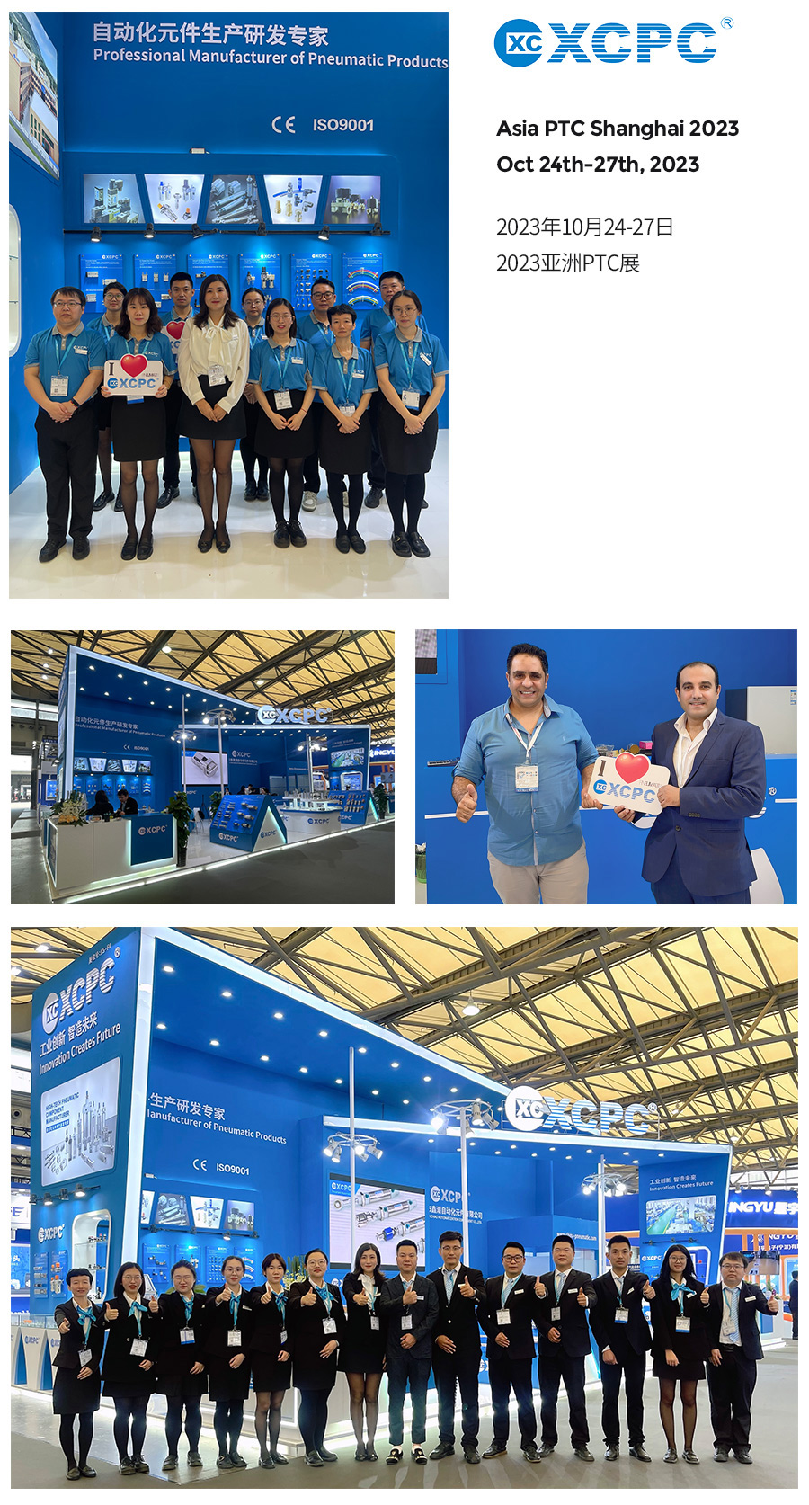 From Oct 24th to 27th,2023, China XCPC Pneumatic participated in PTC ASIA held in Shanghai. During the exhibition, we met with new and existing customers from Europe, the Middle East, Southeast Asia, South America, Africa and the Chinese market. Customers highly recognized the quality of XCPC products and our professional services. We strengthened business partnerships and achieved outstanding results at this exhibition.